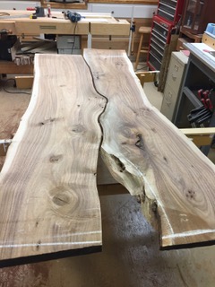 Following the break, John Blackmore talked about a dining room table that he built for his son out of black acacia. The top was made from 3 live edge slabs which were joined together using a router and jig, and set on a sturdy wooden base.